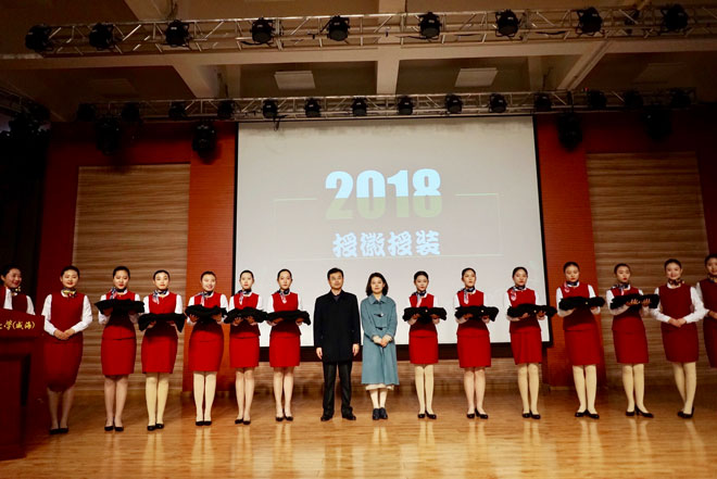 为了培养学生穿着制服的习惯、了解制服穿戴的规范、进一步塑造航空服务型人才应有的形象、增进学生对学校对行业的归属感和责任感,11月30日上午,2018秋季航空服务专业全体学生整齐列队,一场隆重的授装装仪式正在大学生活动中心举行。大会在播放生活短片的轻松氛围中进行,紧接着在雄壮的义勇军进行曲中授装仪式的大幕正式拉开,全体同学精神振奋,激情高涨。首先由礼仪老师周慧老师为同学们讲解制服规范及着装标准,同学们也从中学习到了不少知识。接下来,就开始进行最重要的授装环节,由刘金松老师、王芸芸老师率先为女生授装、由宋修建老师以及周惠老师为男生授装。